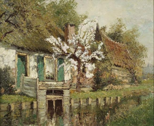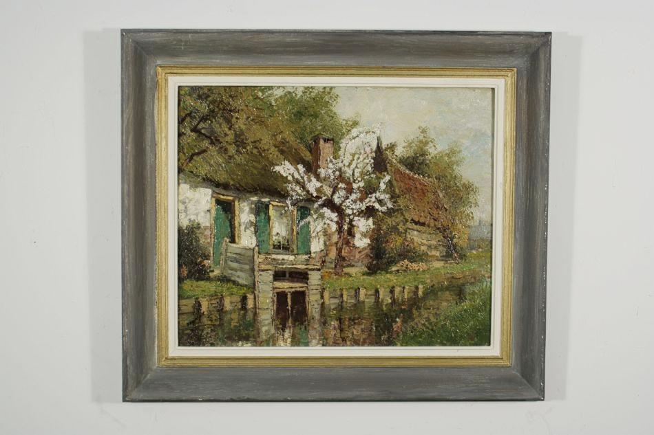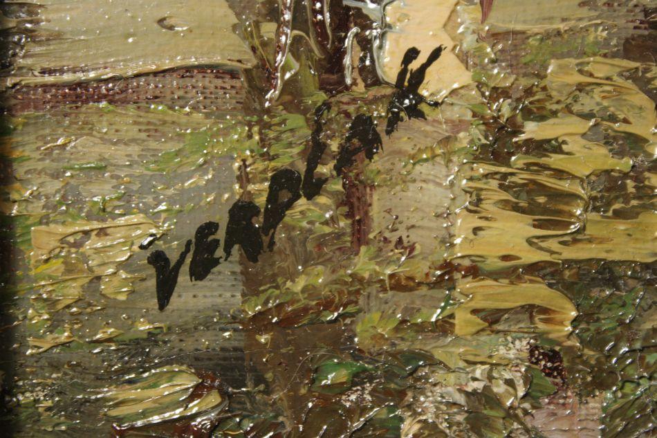Verdlak (20th Century) Landscape with Cottage and Stream, Oil on canvas,