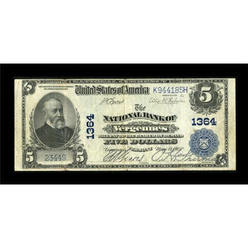 <B>Vergennes, VT</B></I> - $5 1902 Plain Back Fr. 598 <B>The NB of Vergennes</B></I> Ch. # 1364<BR> The number of folds is sufficient of a full VF grade, though they are very heavy, resulting in some weakness and splits in the margins. Large size appearances are scarce with the last in 2005. <B>Fine.</B></I><BR><BR><b>Shipping:</b> Coins & Currency (<a target="_blank" href="http://www.heritageauctions.com/common/shipping.php">view shipping information</a>)
