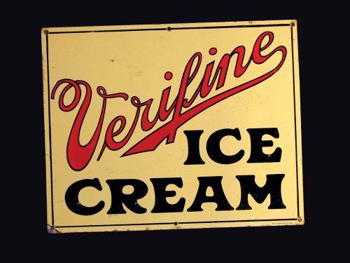 Verifine Ice Cream Two Sided Porcelain Sign. Small chip on one side, minor scratches and edge ware otherwise very good condition. 2o X 16 inches.