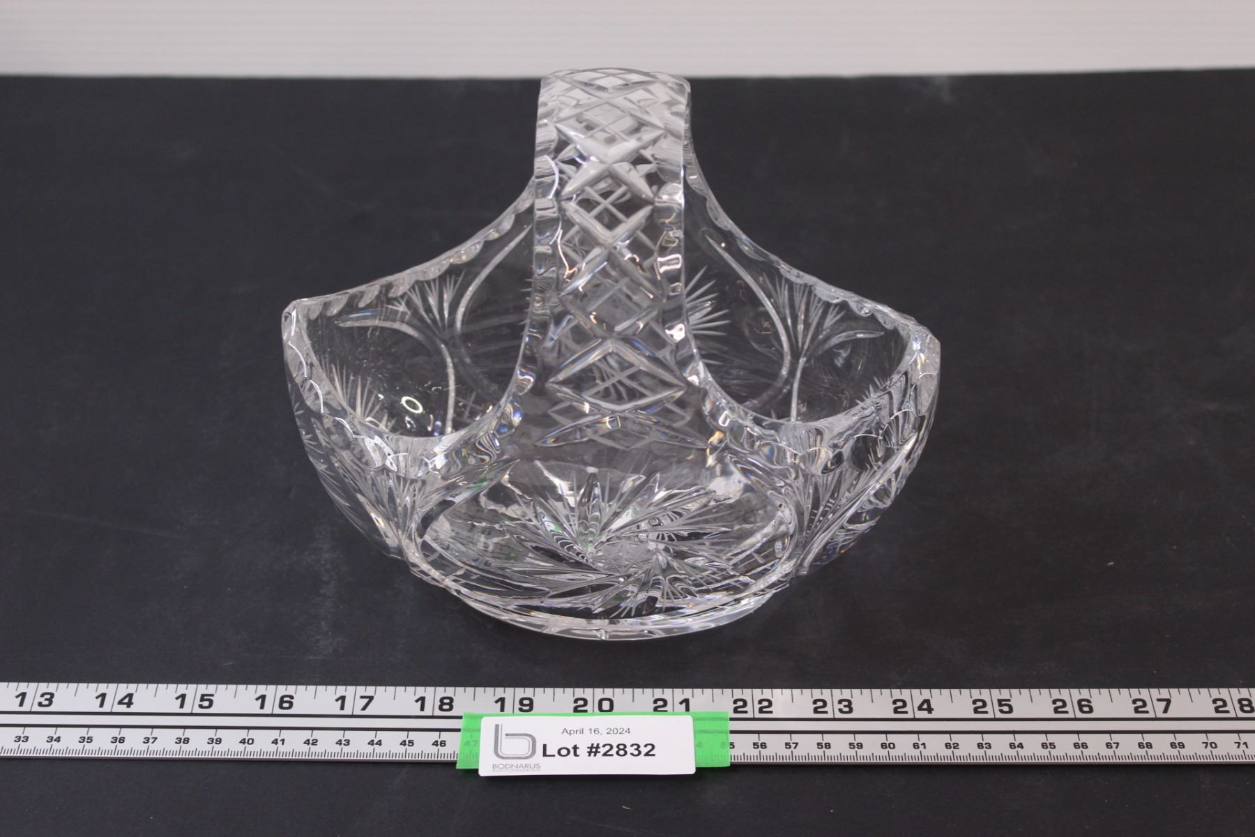 Veritable Genuine Lead crystal small Basket Pinwheel Pattern - 8" Long x 7 1/2" Tall
