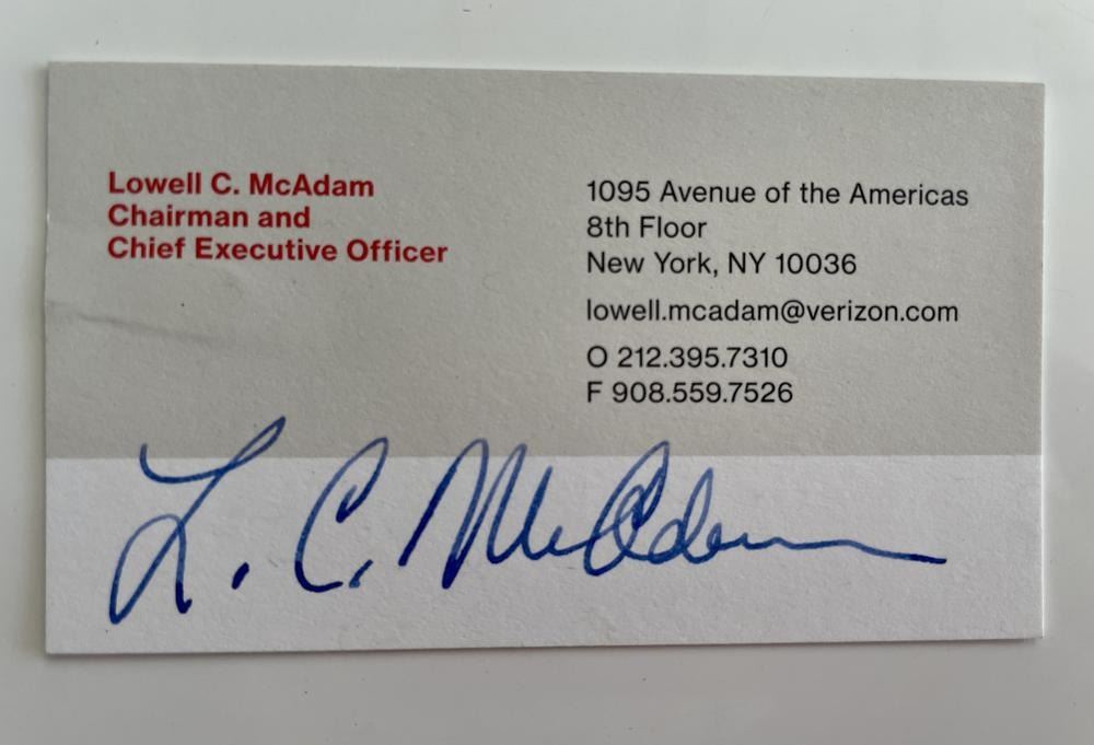 Verizon CEO Lowell C. McAdam signed business card. 2x3inches