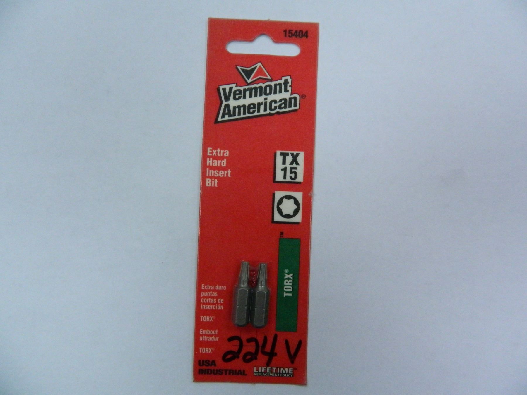 Vermont American 15404 Security Torx Screwdriving Insert Bit, TX15 - 2/Pk