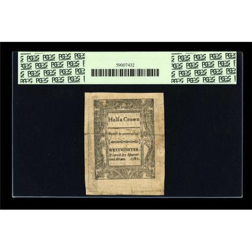 <B>Vermont February 1781 2s/6d PCGS Apparent Very Fine 30.</B></I> This Vermont note has four wide margins, a characteristic that is seldom seen on notes from this state. The back design is also nicely centered. All Vermont notes are very rare, and most known examples are in extremely low grade. The majority of the known pieces have been pieced together from several different notes, often of different denominations. Vermonts are unpriced in Newman above VG. They were printed on thin, weak paper that quickly disintegrated in circulation. Their scarcity is due to the fact that only a single issue was emitted, and that issue, authorized in February 1781, had its legal tender status revoked after a little more than a year in circulation. Their scarcity also was increased by the fact that these notes retained their validity for tax payments, but the Vermont Treasury was denied the right to reissue the notes, and they were burnt when received for tax payments. This example has had a few nicely done "repaired splits." A great note for the serious Colonial collector.<BR><BR><b>Shipping:</b> Coins & Currency (<a target="_blank" href="http://www.heritageauctions.com/common/shipping.php">view shipping information</a>)