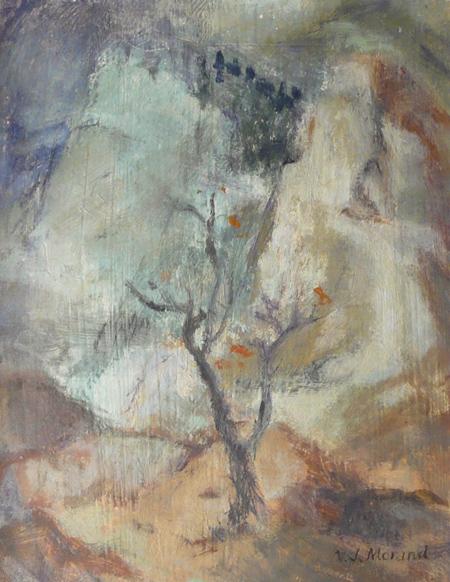 Verna Jean (Morand) Versa (1926-2005) Oil on Board "Lone" Signed lower right "VJ Morand" 1952 10" x 8"