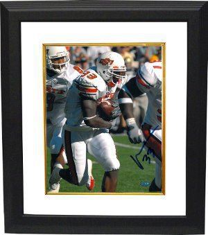 Vernand Morency attended Oklahoma State University and finished his career with 451 rushing attempts for 2,661 yards (5.9 yards per rush attempt avg.), 23 touchdowns, 11 receptions for 119 yards (10.8 yards per rec. avg.), and returned ten kickoffs for 224 yards (22.4 yards per kick ret. avg.). Morency's junior season in 2004 was his breakout season. In 2004 he rushed for 1,474 yards and 12 touchdowns. He also had one receiving touchdown. Morency was the recipient of the prestigious Thurman Thomas Award for being the most outstanding offensive player in the 2004 season. Vernand Morency has hand autographed this Oklahoma State 8x10 Color Photo. Morency Hologram and Certificate of Authenticity from Athlon Sports. Custom White Mat and Premium Black Color Frame.