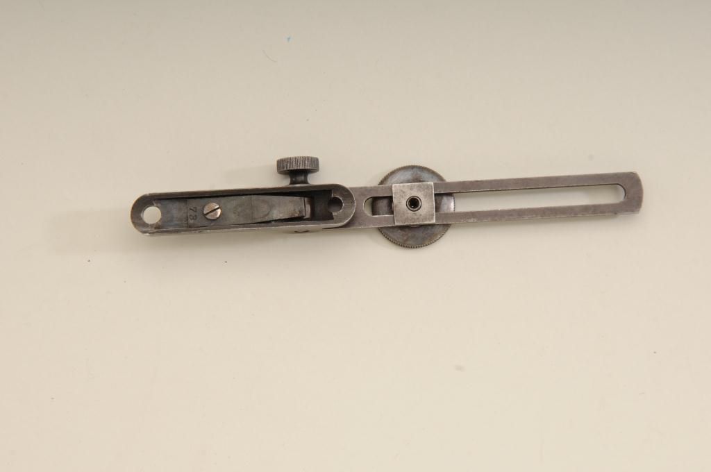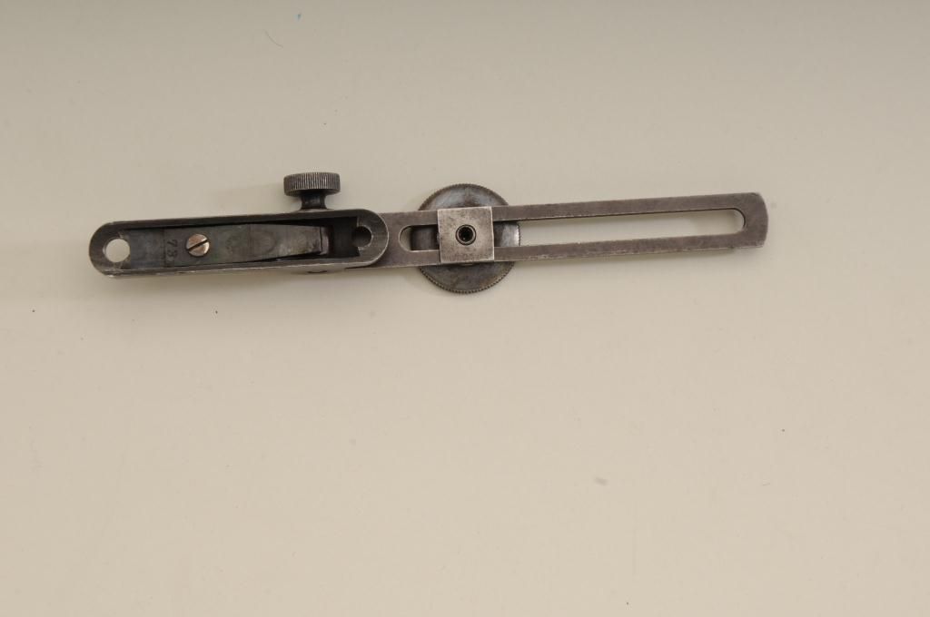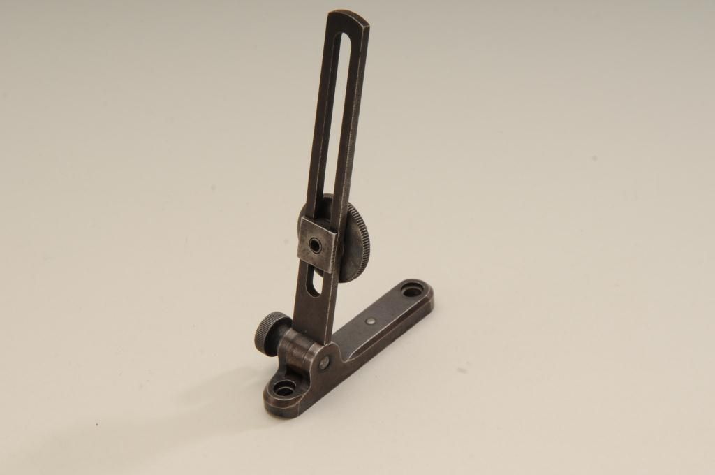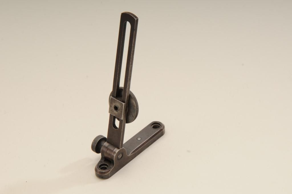 Vernier adjustable tang sight, probably for a Winchester rifle, in overall very good condition, “73” stamped on spring inside the base of the sight; in overall good condition showing traces of original blue finish,graduations on left side of tower from 0 to 50. Est.: $350-$700.