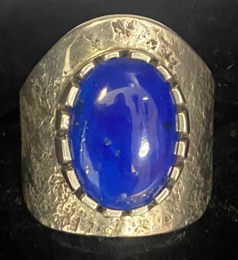 Vernon Begaye, Navajo Lapis Sterling Ring. VAB Hallmarked