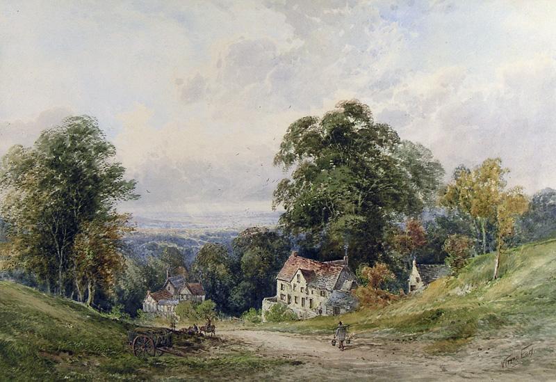 British [1854-?] PASTORAL SCENE WITH COUNTRY ROAD watercolour on paper 14.5 x 21.5 in. (36.8 x 54.6 cm) signed