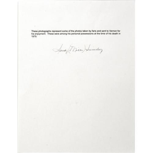 <B>Vernon Presley Photos.</B></I> A set of one b&w 11" x 14" and 13 color and seven b&w assorted 8" x 10" photos of Elvis' father from the '60s and '70s. In overall Very Fine condition with mild wear and a heavy fold crease to the larger photo. <I>From the Sandy Miller Collection</B></I>.<BR><BR><b>Shipping:</b> Flat Material, Small (<a target="_blank" href="http://www.heritageauctions.com/common/shipping.php">view shipping information</a>) <BR><BR><B>Important