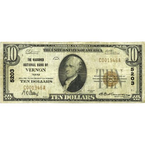 Vernon, TX - $10 1929 Ty. 1 The Waggoner NB Ch. # 5203T
