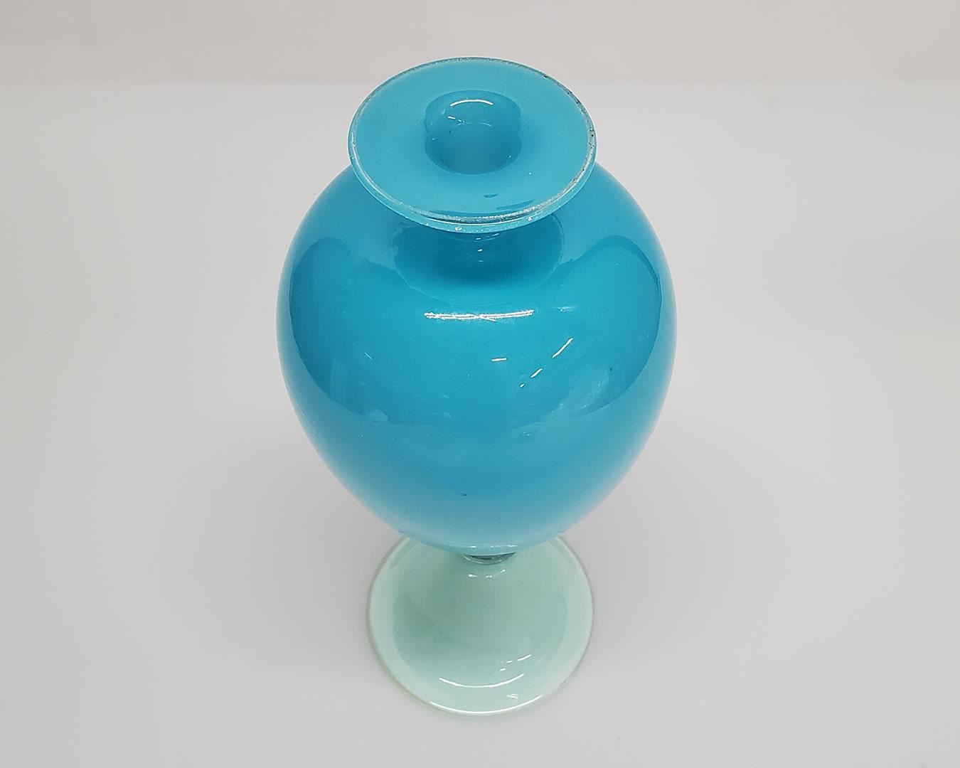 Blue and blue "Veronese" style vase, this piece measures 10" tall by 4.5" diameter.