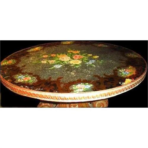 Circa. 1940 Original verre eglomise painted glass top with painted wood base. All in excellent condition. Rare and wonderful!