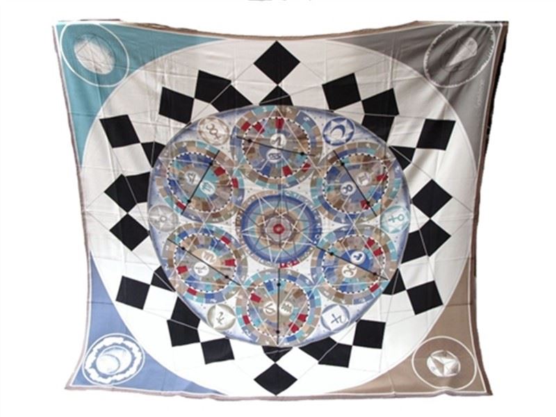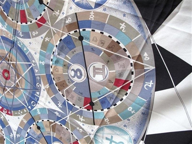 This stunning vintage Versace scarf is a unique accessory for any astrological sign. It measures 51''x53'' and can be used as a shawl with its over sized appeal. The fabulous fashion print silk features 6 celestial spheres that are all composed of the 12 total zodiac signs. This is a gorgeous piece with a hand rolled hem that will coordinate with absolutely anything. No tag, but signed Gianni Versace. Measurements: 51''x53 #bags157