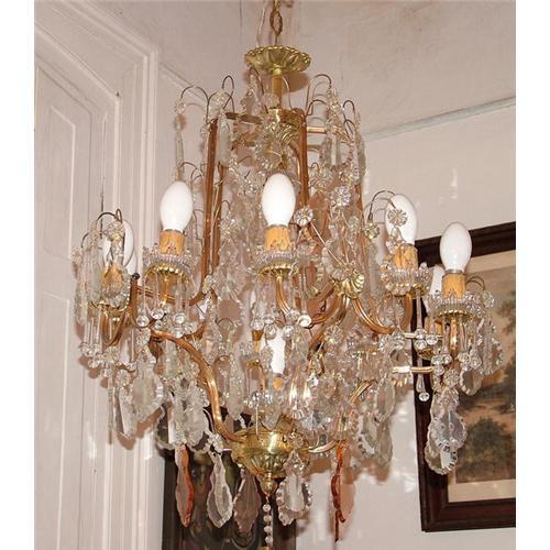 Unusual quality Versailles style 10 lights chandelier, with high quality Bohemian lead crystal pendants , stands in total 36 inches H and 26 W , rewired, in very good conditions