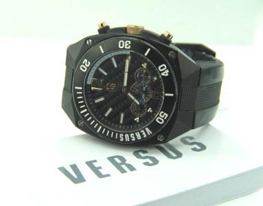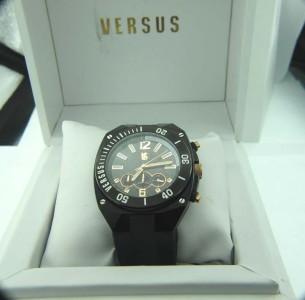 Versus Stainless Steel, Chronograph Rubber Strap Watch with Box.The total watch's weight is 131.4 grams.The measurements of the watch head is 42 x 45 mm in diameter and 13 mm in thick.The length of watch: 8.25".Rubber Strap is 26 mm wide.Water Resistant