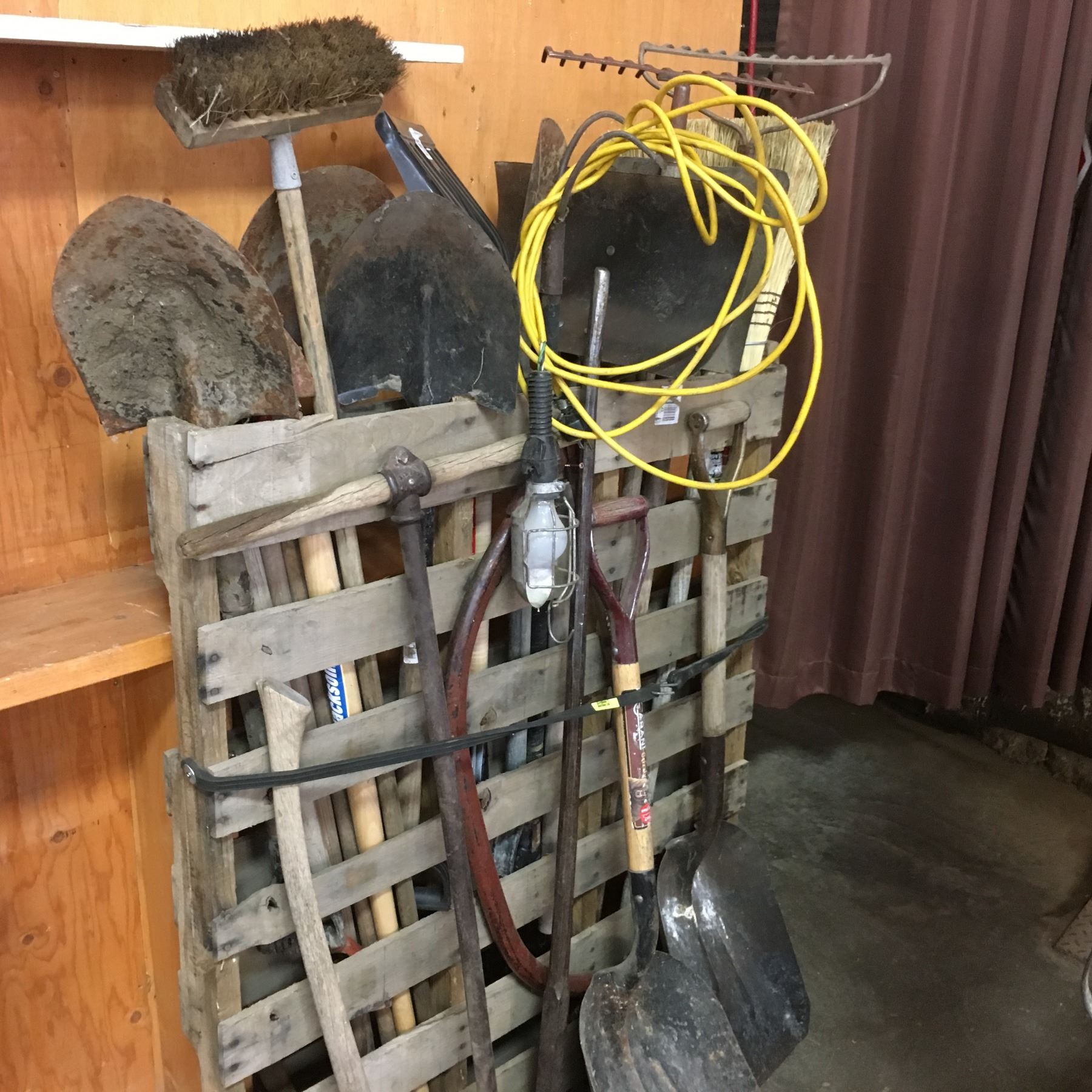 Vertical Pallet Lot: Long Handle Tools (Shovels, Crow Bar, Wood Saw, etc)