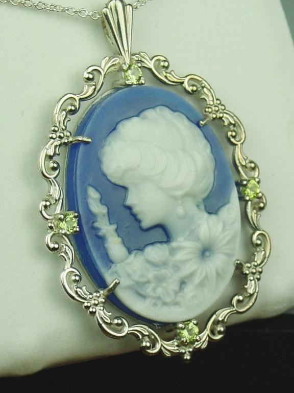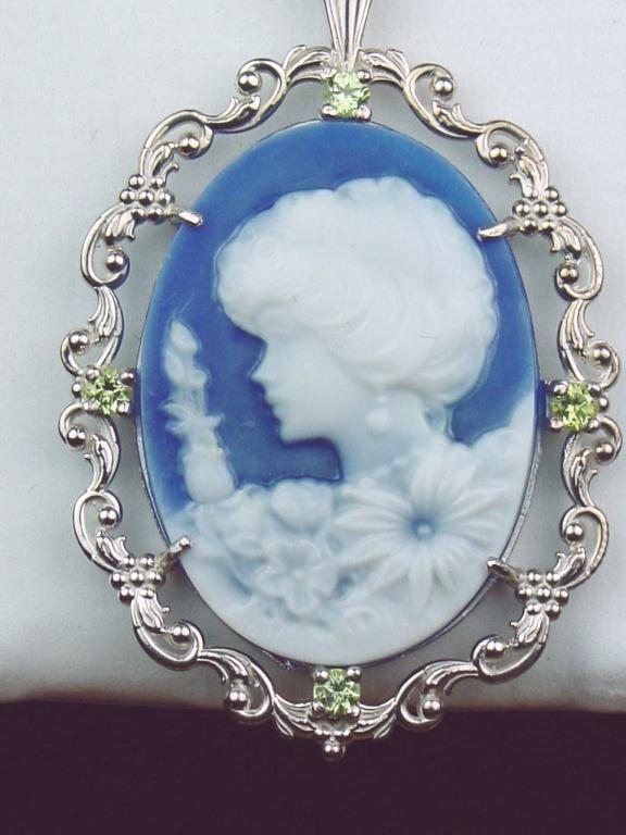 Very Attractive Ladies Sterling Silver Necklace Handmade, with hand carved cameo and side peridot.Ha