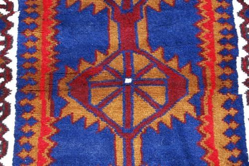 Very beautiful semi antique Persian hamedan. Size 3 x 5 feet, made of fine quality lamb's wool pile on cotton foundation, all natural vegetable dye, incorporating an open field design on a rich red background with a center row of large medallions. From Hamedan, Iran.