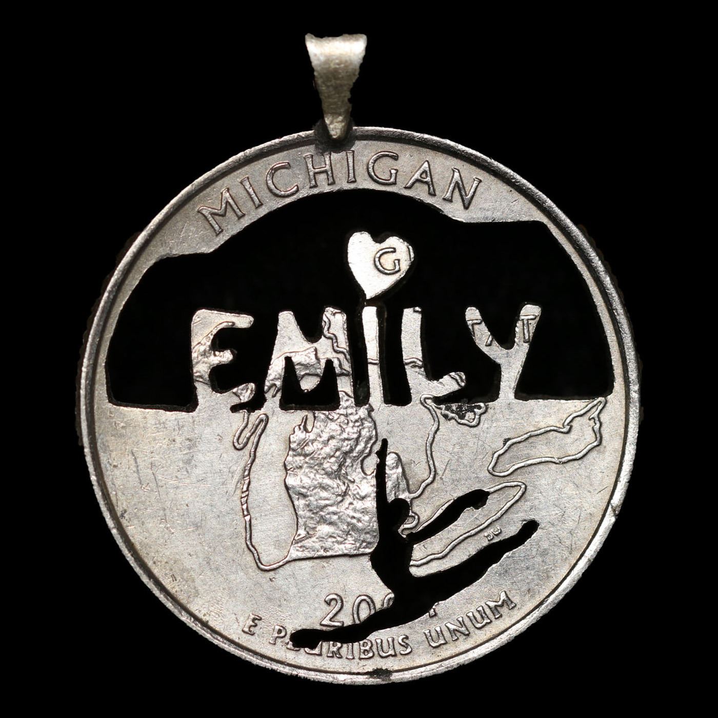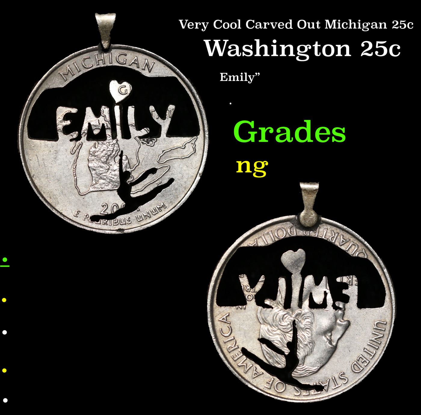 Very Cool Carved Out Michigan 25c Washington Quarter 25c Grades NG.