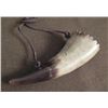 This is a Very Early Antique Powder Horn. It is made from a real horn, carved with scalloped rim opening. It measures 6 1/4 inches long with a 2 1/2 inch opening. Two metal wire hooks hold the rawhide lace (later period). Overall it is in very good condition. * The scalloped opening makes this a very interesting powder horn.
