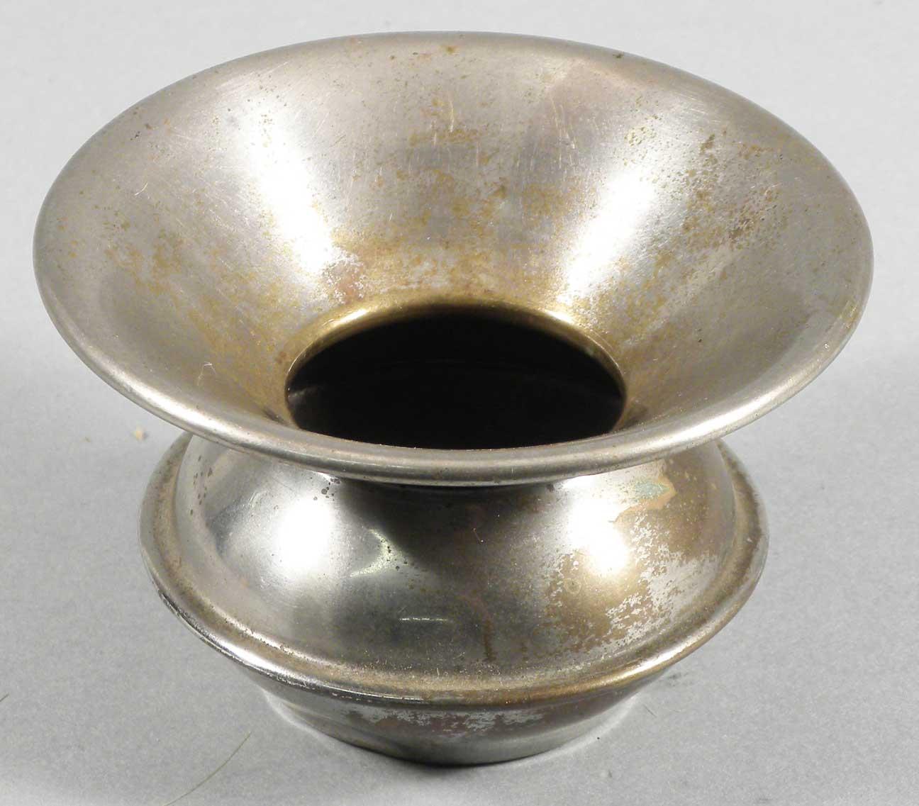 Very Early Hand Held Nickel Plated Ladies Spittoon. A couple of dents and wear to the nickel otherwise very good condition. 3 1/2 inch diameter X 2 1/4 inches tall.