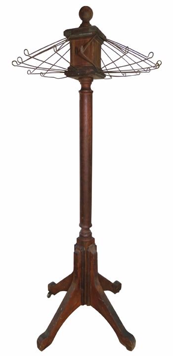 Very Early Oak Coat Rack. Attatched original wire hangers. Alexander Black, sole mfg patent date July 14, 1885. Good Original Condition. 8 feet tall.