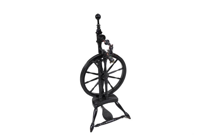 Very Early Pedal Operated Spinning Wheel Black polychrome finish.Black polychrome finish.