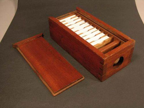 Very early walnut card press - marked on brass screw A. Ball & Bros., Chicago. Holds 10 decks. 11" x 5" x 3.5" Ex. cond.
