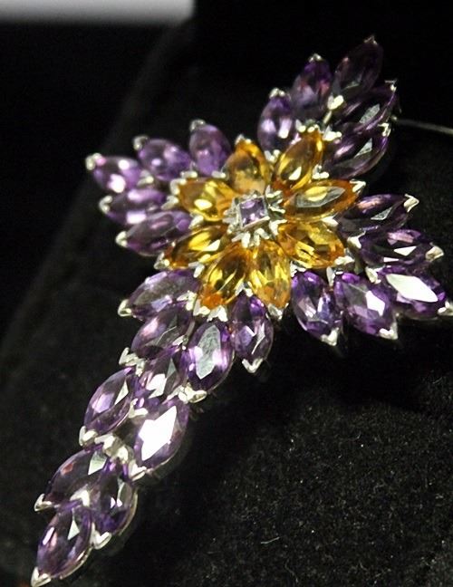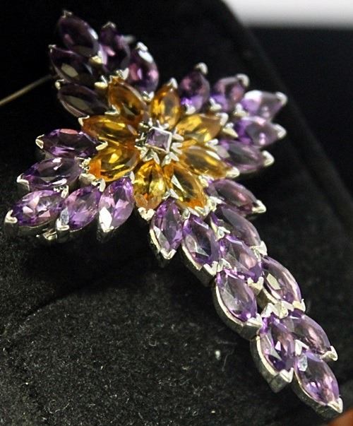Sterling Silver Lab "Cross" Design Tanzanite & Golden Sapphire Pendant. Twt approx 20 cts.