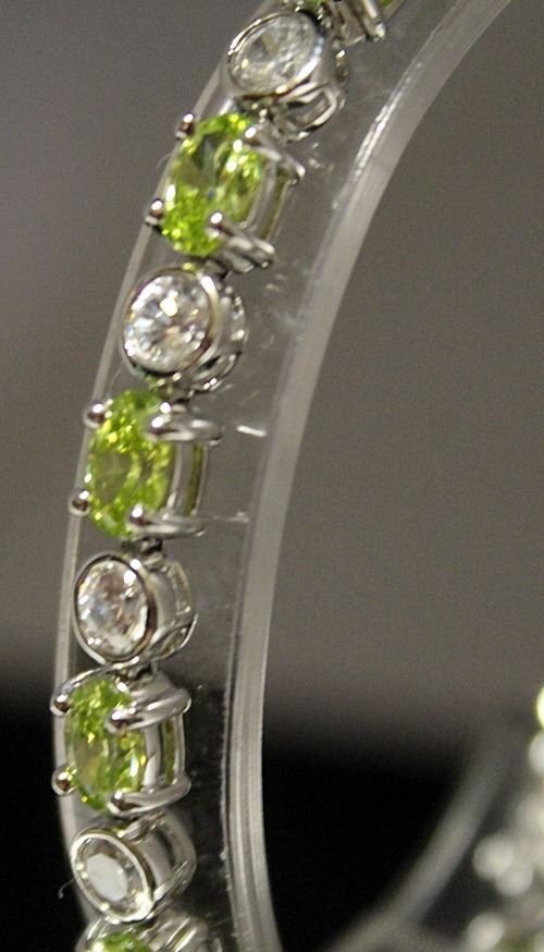 Very Fancy Sterling Silver Lab White Sapphire & Peridot Bracelet. Twt approx 20 cts.