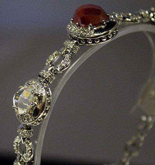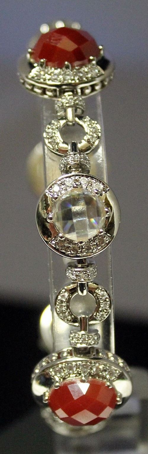 Very Fancy Sterling Silver Multi Lab Gems Bracelet. White Sapphire, White Topaz & Graduated Garnets twt approx 40 cts.