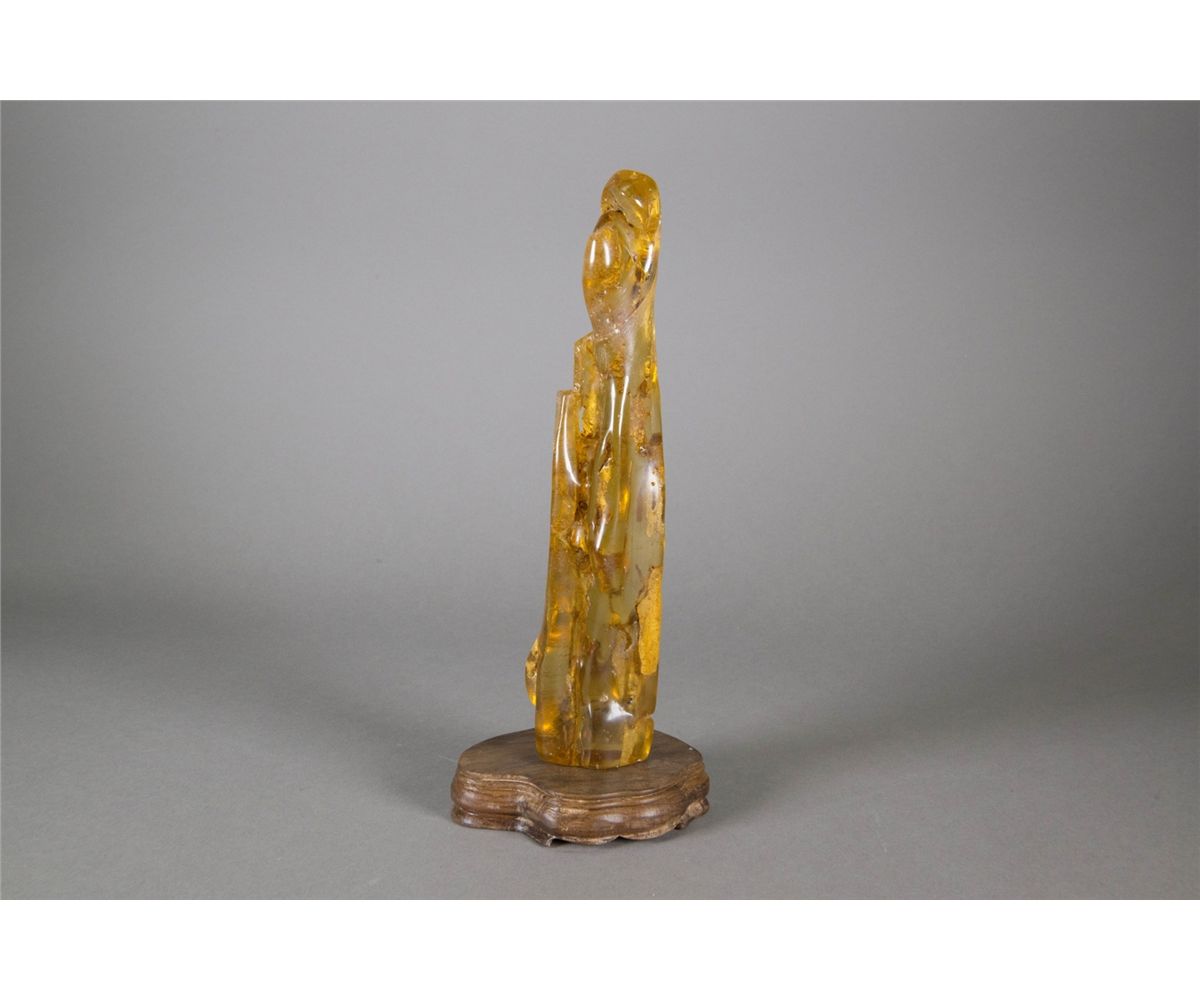 Very fine large Colombian cognac amber; of natural form; wood stand included; H: 29 cm, W: 7 cm, 532 grams (with stand); 307 grams (without stand) certified by gemologist