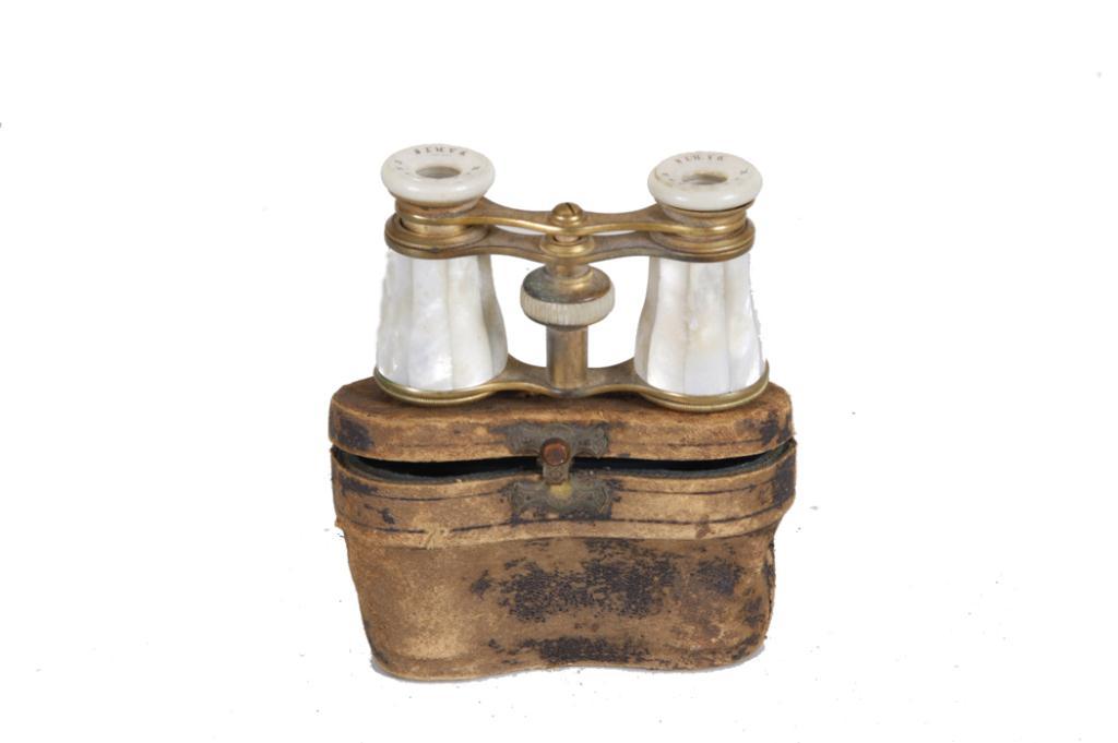 Very Fine Pair of Mother of Pearl Opera Glasses By Marthand of Paris, in original case.By Marthand of Paris, in original case.