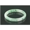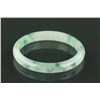 Fine circular jadeite bangle; of white with mottled green; good translucency; with semi-rounded edge; wooden stand not included; D: 7.30 cm (outer), D: 5.97 cm (inner), 38 grams, density: 3.3; Provenance: T. Ng Collection Toronto