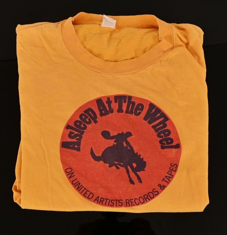 The very first Asleep at the Wheel t-shirt made by their record company, United Artists, in anticipation of their very first record "Comin Right at Ya" in 1973. From Ray Benson's personal collection.