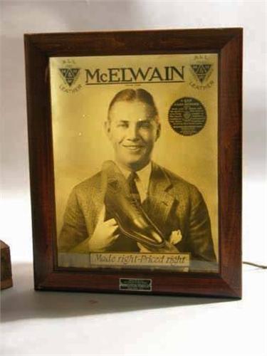 Very first hologram advertising sign for McElwain Shoes made by Animated Picture Products Co. NY, NY. Shipped by American Railway Express Co. March 1922. Man opens and closes eyes. In original wood shipping crate with label. ex. cond. Approximately 12" x 15".