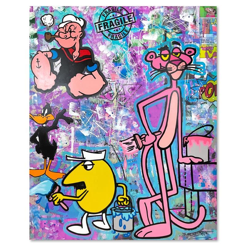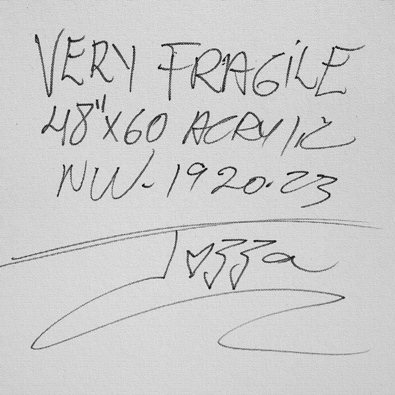 Very Fragile is a unique mixed media acrylic on gallery wrapped canvas by Jozza. Hand Signed by the artist and titled in verso, the piece comes with a letter of authenticity. Measures approximately 60 x 48 (image).