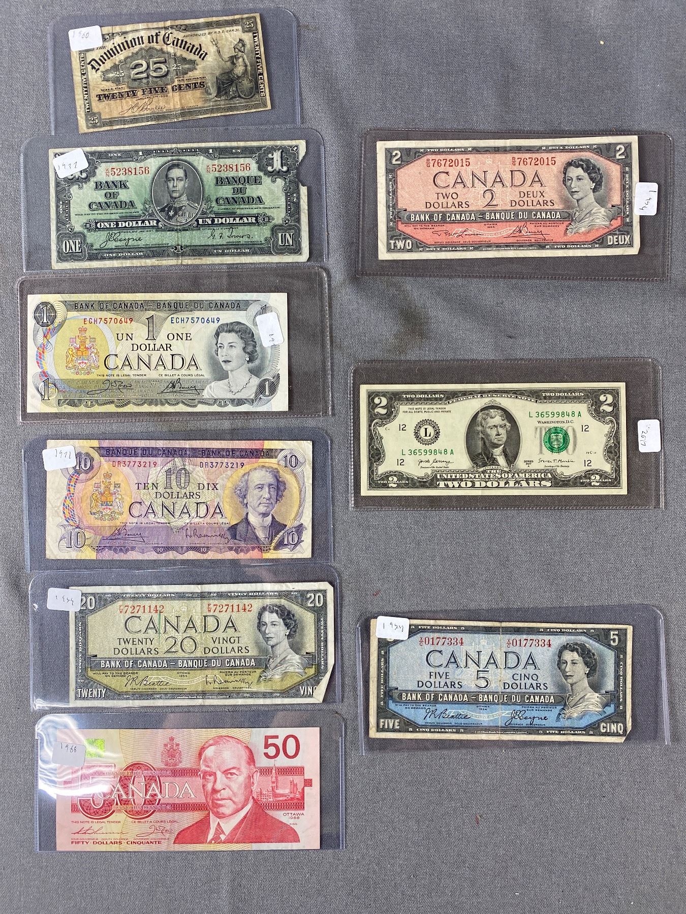 Very Good Starter Canadian Old Paper Money Collection. $ 91.25 Face Value.