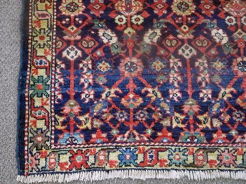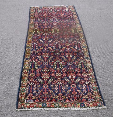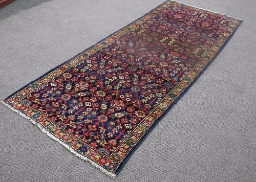 Very gorgeous free flowing floral design Persian Lilian. Size 3.6 x 8.11 feet, made of fine quality lamb's wool pile on cotton foundation, all natural vegetable dye, hand woven, incorporating a deeply detailed free flowing floral pattern on a navy colored background and contrasted beautifully by an intricately done floral border. ?A very rare design pattern that is very hard to find in today's marketplace. ?Hand woven in Lilian, Iran.