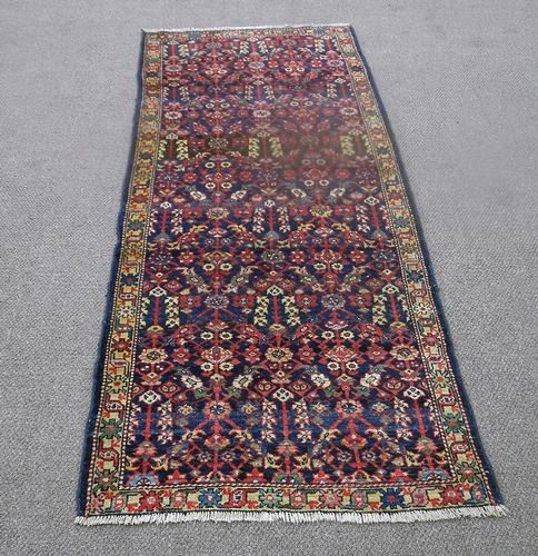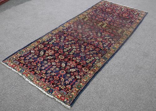 Very gorgeous free flowing floral design Persian Lilian. Made of fine quality lamb's wool pile on cotton foundation, all natural vegetable dye, hand woven, incorporating a deeply detailed free flowing floral pattern on a navy colored background and contrasted beautifully by an intricately done floral border. A very rare design pattern that is very hard to find in today's marketplace. Hand woven in City of Lilian from Iran. Size: 3 feet 6 inches X 8 feet 11 inches. Country of Origin: Iran.
