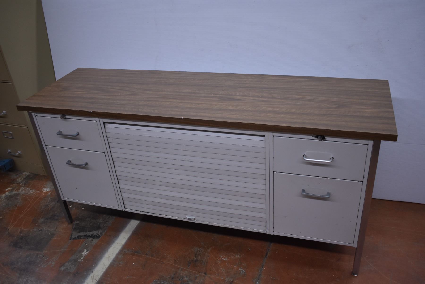 Very Heavy Metal Filing Cabinet Desk (2 Drawers Won't Open) (65" Long)