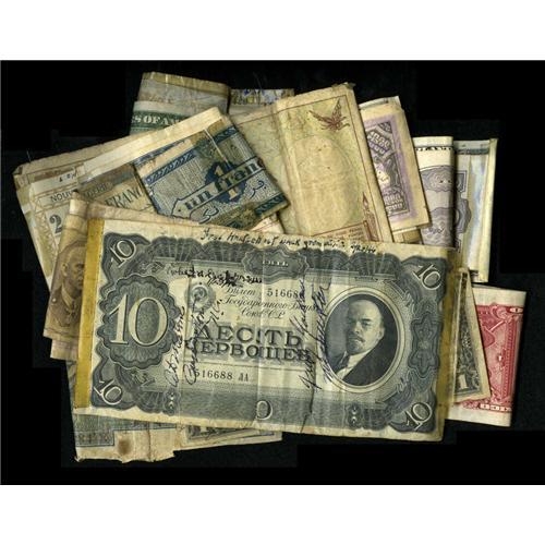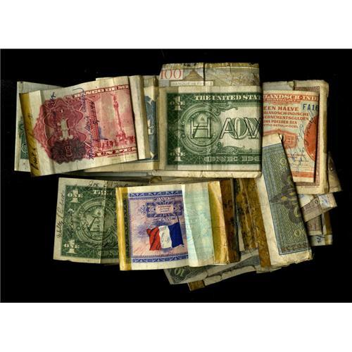 <B>Very Interesting Short Snorter.</B></I><BR>This is one of the very best short snorters we have seen. The main chain consists of 39 notes and there is also a chain of six notes that has broken off plus two single notes. The notes of this short snorter indicate someone who served in both the European and Pacific Theatres of World War II. In fact a North Africa and Hawaii $1 are observed. <I>There will be no returns on this lot for any reason.</B></I><BR><BR><b>Shipping:</b> Coins & Currency (<a target="_blank" href="http://www.heritageauctions.com/common/shipping.php">view shipping information</a>)