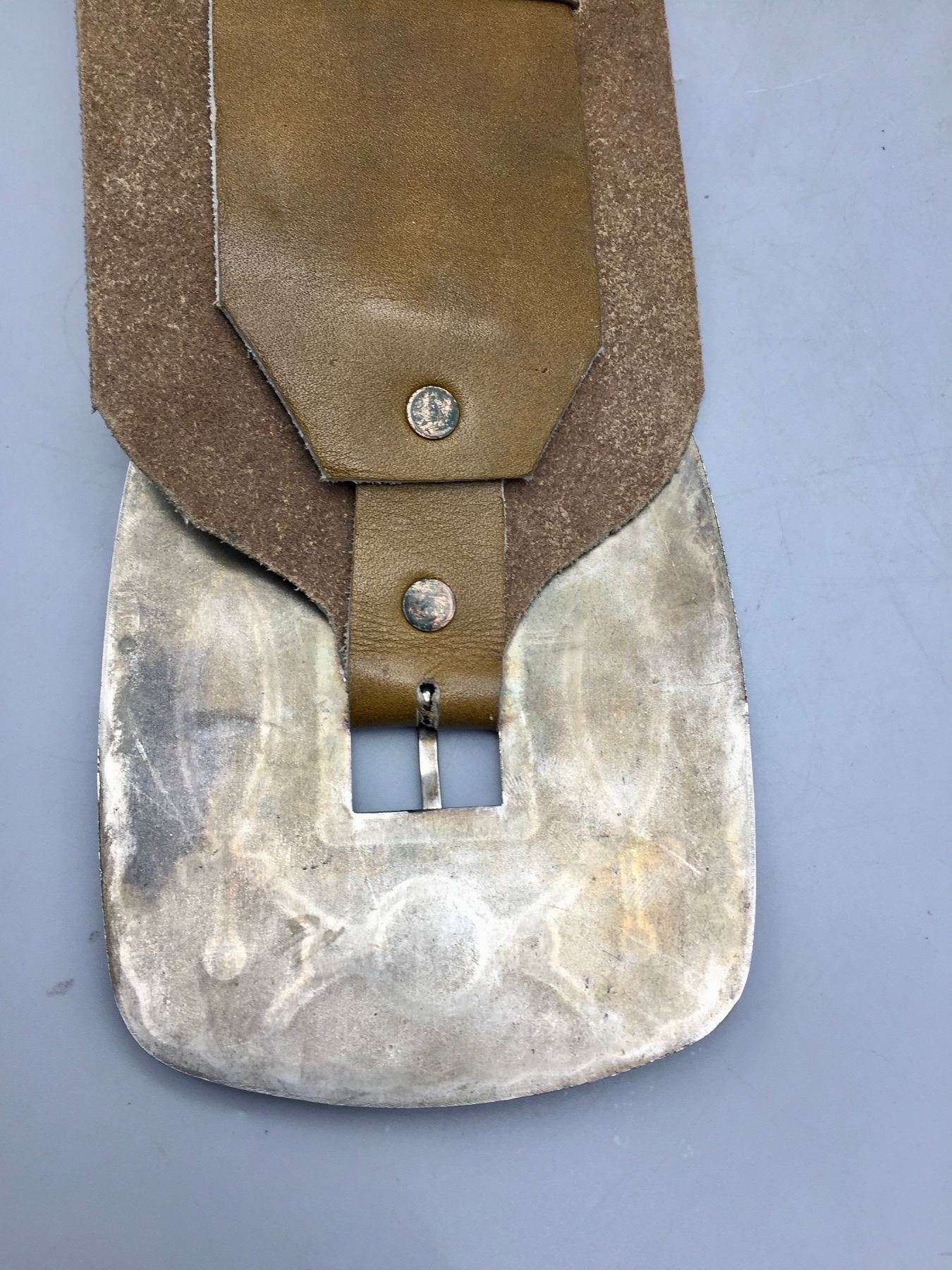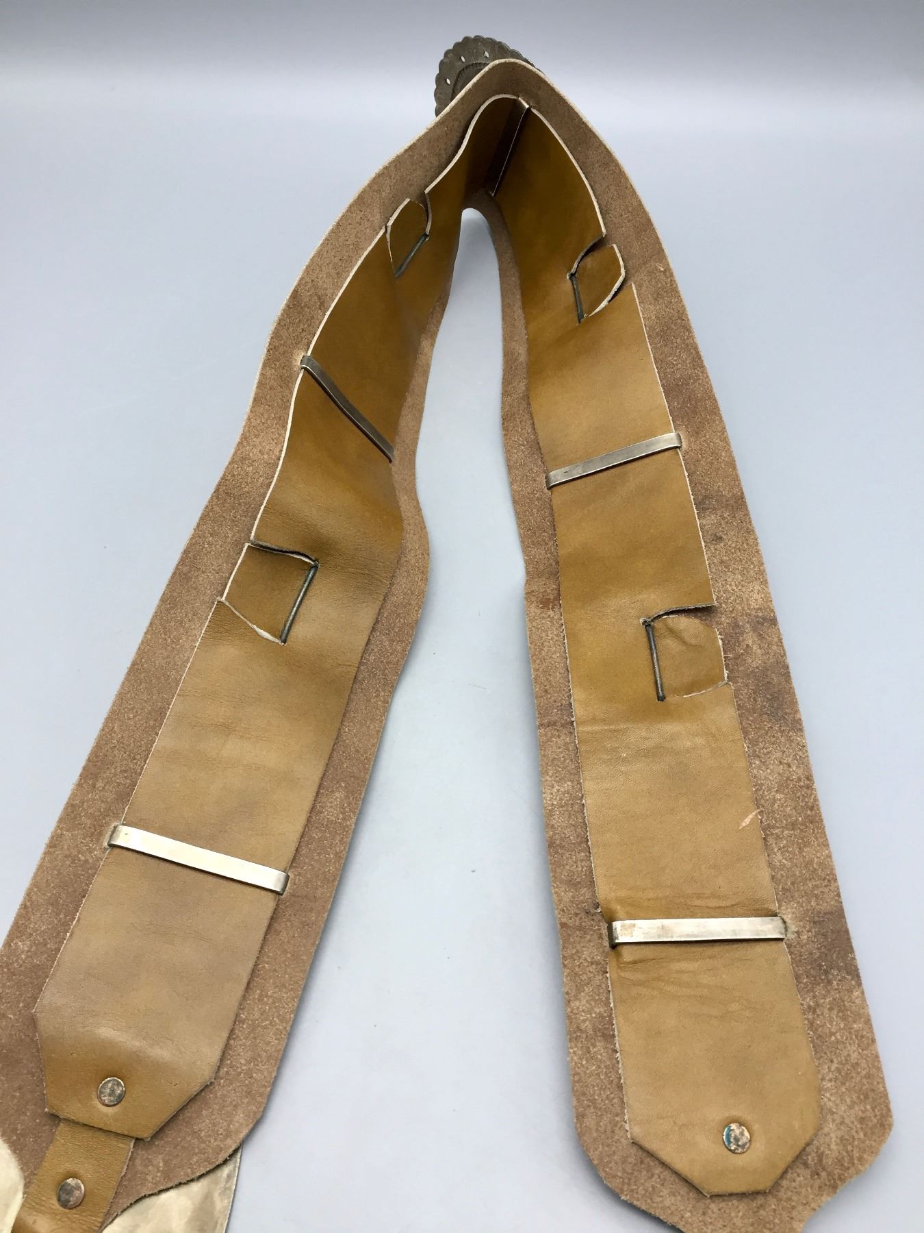Size: Weighs approx. 883 grams. 3-5/8" w x 49" long. Buckle measures 3-3/4" w. x 4-1/2" long. Condition: Good for its age, normal wear expected. Please look closely at the pictures - they are an important part of our description.