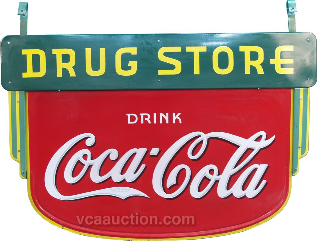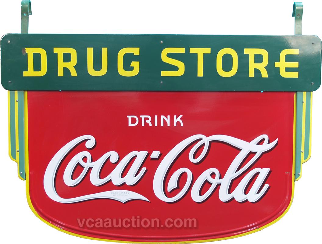 Very Large "Drink Coca Cola" Outdoor Double Sided Tin Drug Store Sign - 63" x 42" Mint Condition