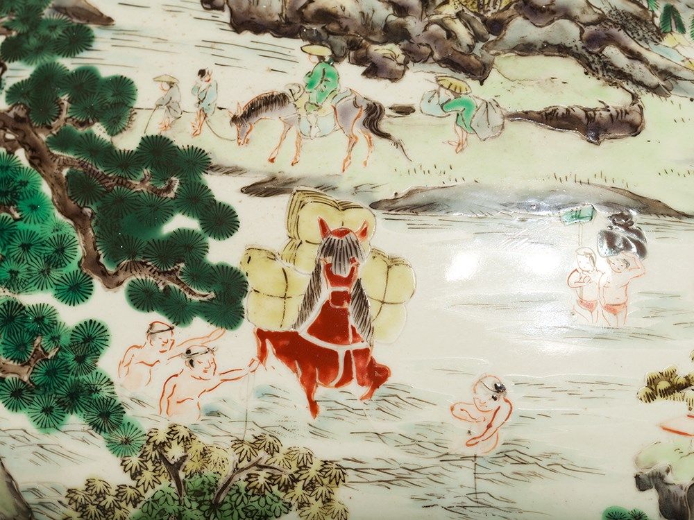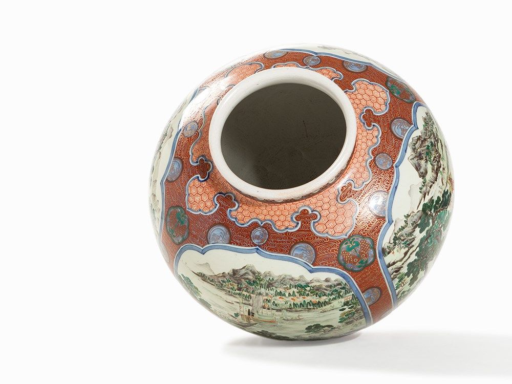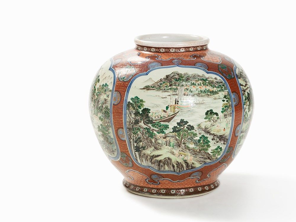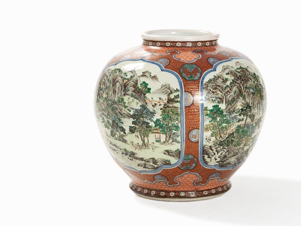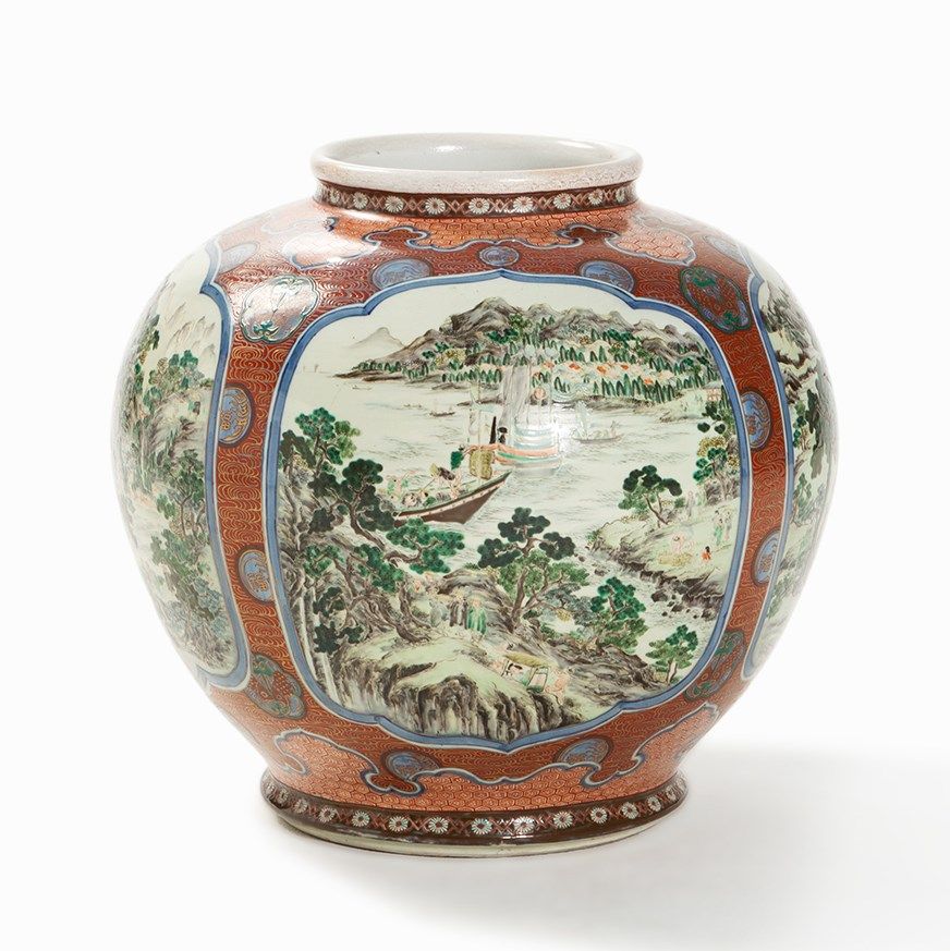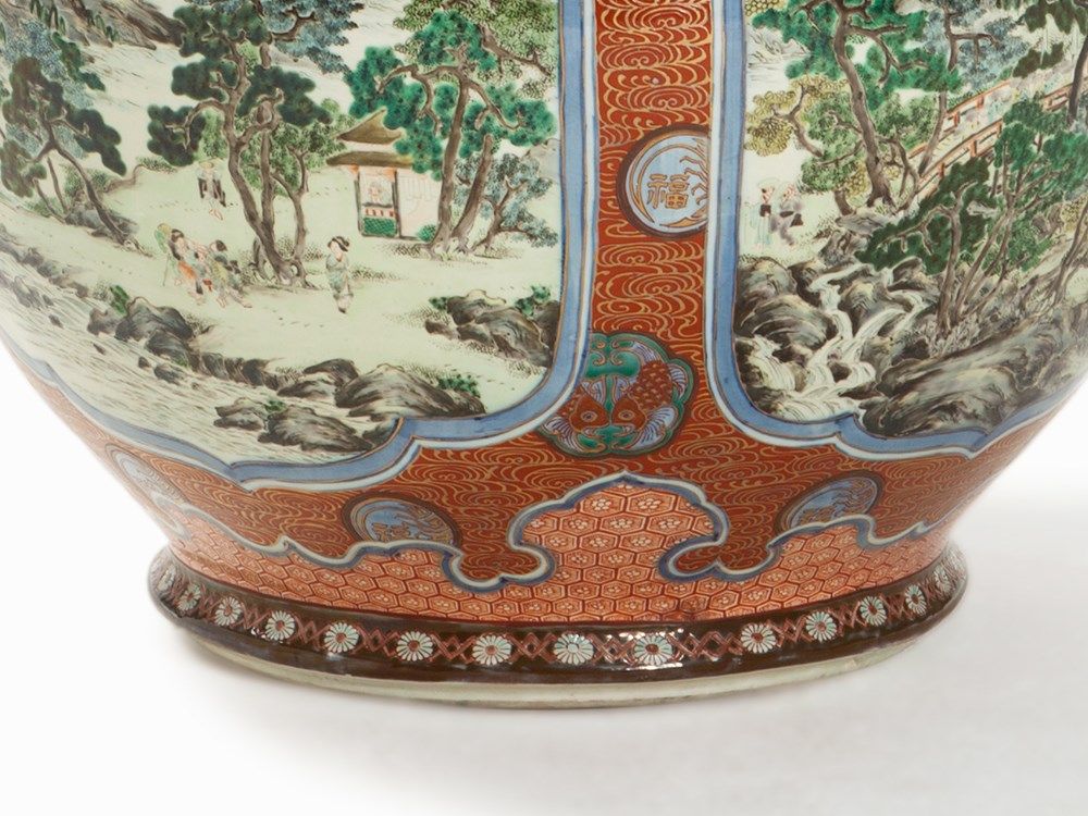 Very Large Kutani Vase with Polychrome Landscape Scene, Meiji