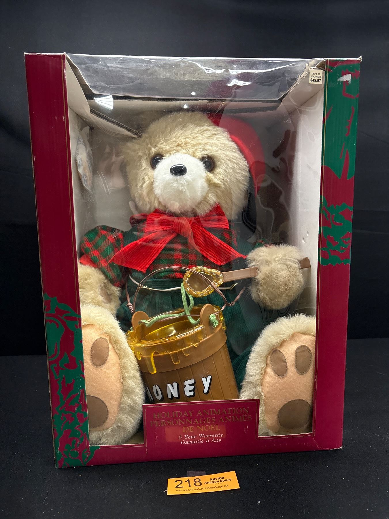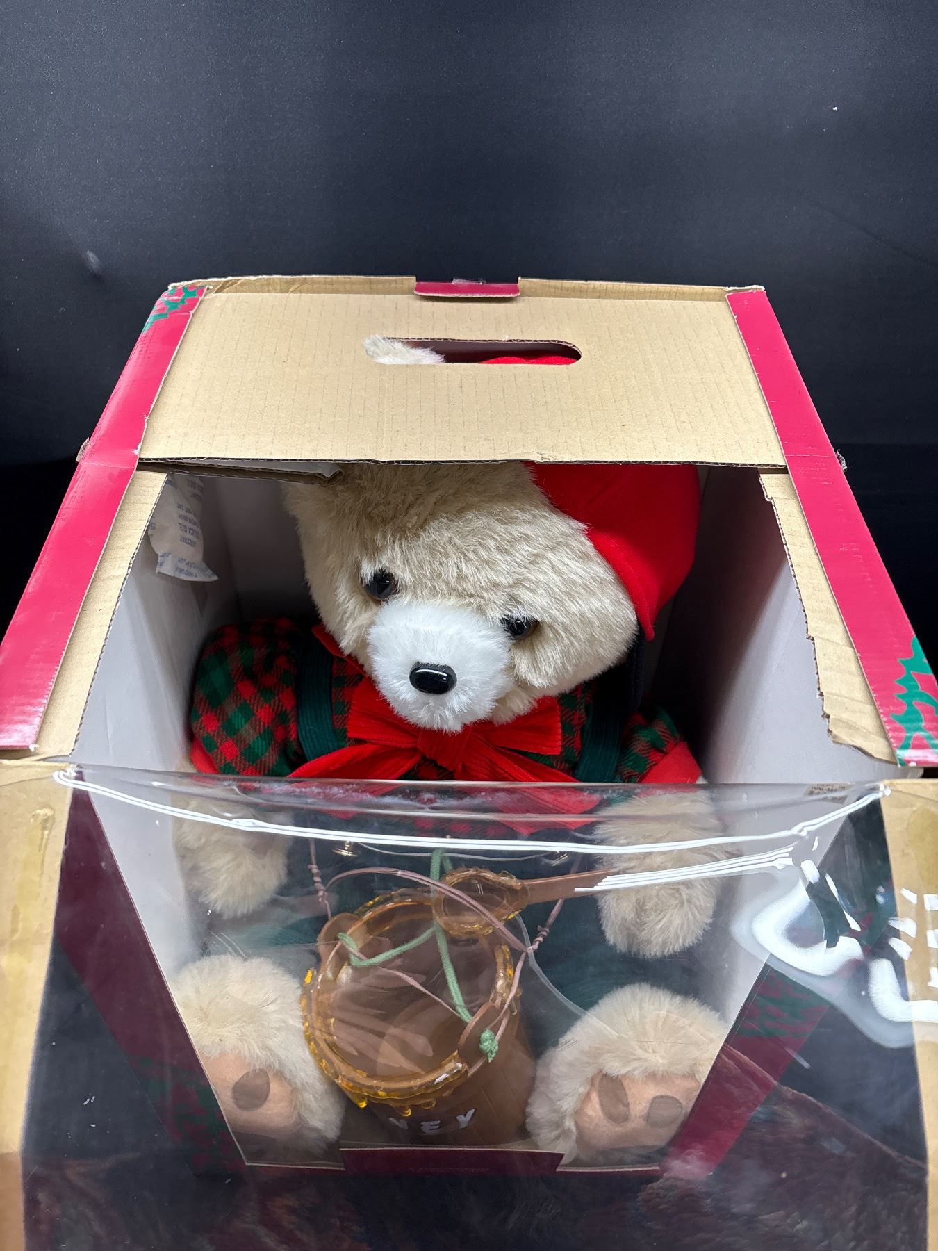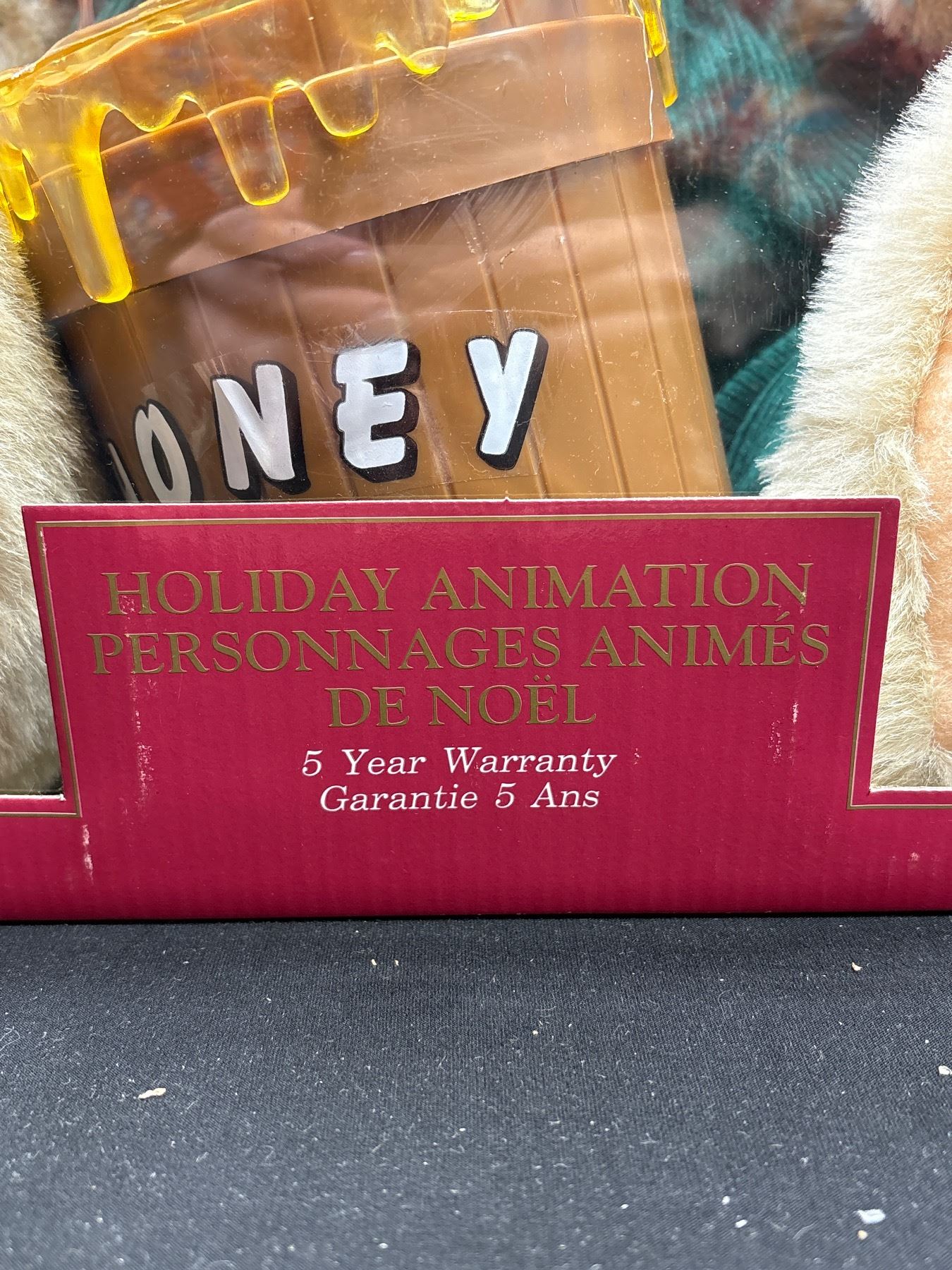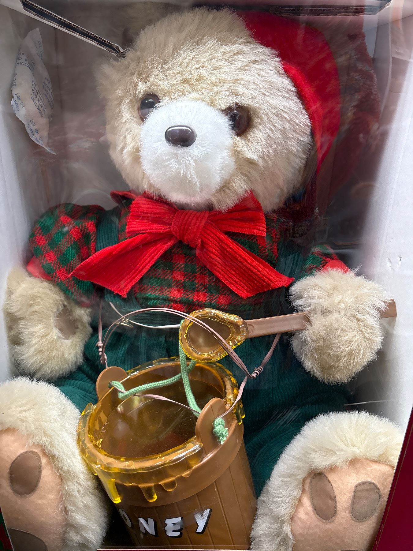 Very Large New in Box Christmas Bear with Honey Pot Animated Movement