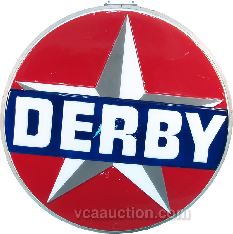Very Large Outdoor Embossed Plastic "Derby" Sign w/ metal frame - 72" diam
