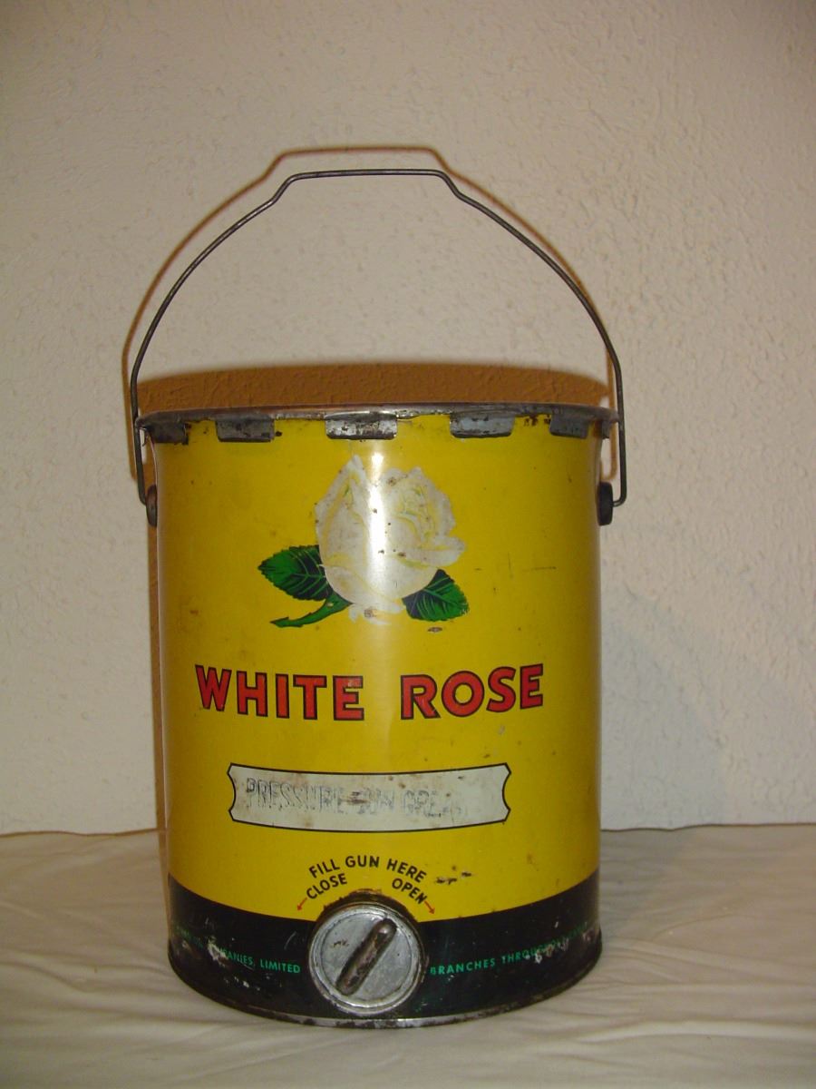 Very Nice 5 Gallon White Rose Pressure Gun Grease Pail