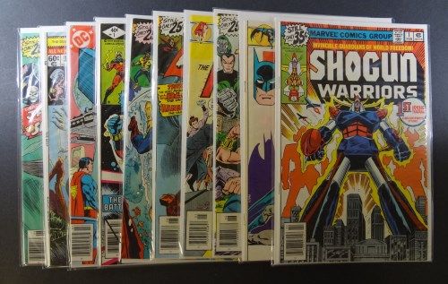 All are at least "Very Fine" Except for Shogun Warriors #1 (crease back cover) & Battlestar Galactica #1 (closer to Fine). Includes: Battlestar Galactica #1 (March 1979), Shogun Warriors #1 (Feb 1979), Detective 458 (April 1976), Super-Villain Team-Up #6 (June 1976), Flash #241 (May 1976), Tomb of Dracula #45 (June 1976), PowerMan #31 (May 1976), Marvel Spotlight #1 (July 1979), World of Krypton #1 (July 1979), The Deep #1 (1977), Weird Wonder Tales #16 (June 1976). Est. Value $85.00 - $105.00.