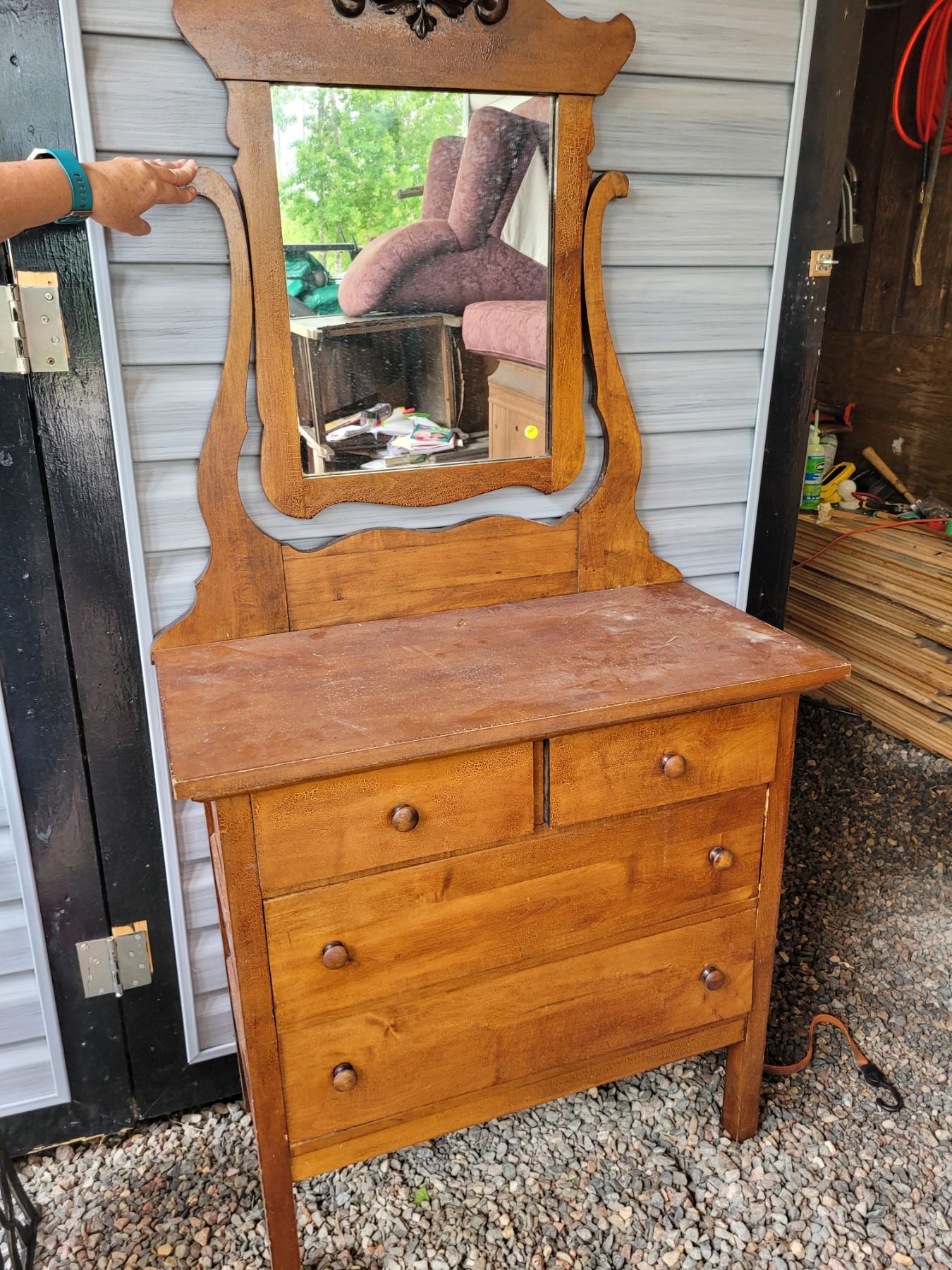 Very Nice Maple Dresser w/ 4 Drawers & Original Beveled Mirror